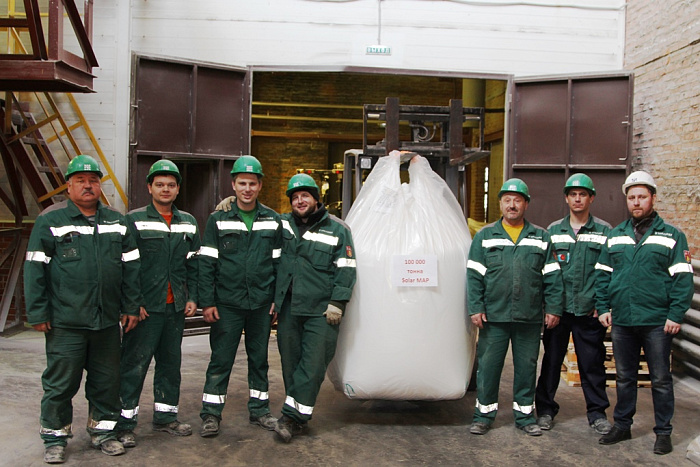 АО «Воскресенские минеральные удобрения» (АО «ВМУ» является аффилированным лицом и входит в группу лиц АО «ОХК «УРАЛХИМ») выпустили юбилейную, 100-тысячную тонну моноаммонийфосфата специального водорастворимого, известного на рынке удобрений под торговой маркой Solar MAP.