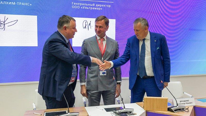 АО «ОХК «УРАЛХИМ» и ООО «Ультрамар» объявляют о стратегическом партнерстве и заключении договоров на перевалку и аренду складов в рамках проекта по созданию многофункционального терминала в порту Усть-Луга. Подписание состоялось на Петербургском международном экономическом форуме, где официальными документами обменялись генеральный директор ООО «УРАЛХИМ-ТРАНС» Всеволод Ковшов и генеральный директор ООО «Ультрамар» Андрей Бонч-Бруевич.