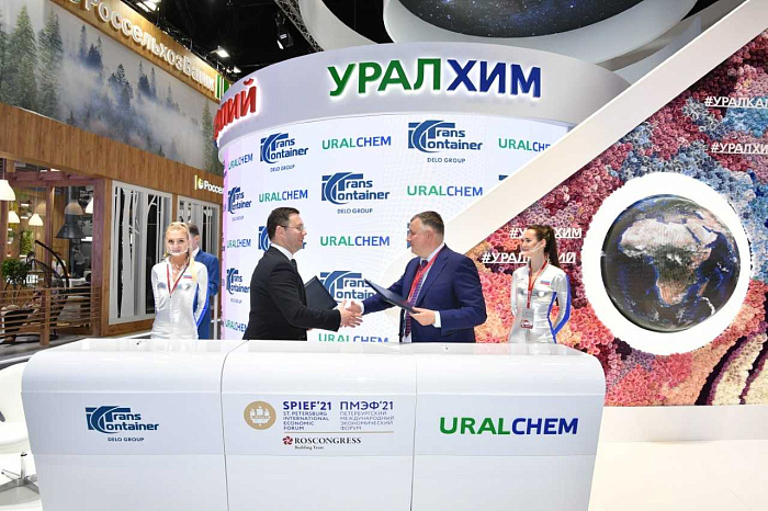 ПАО «ТрансКонтейнер» (входит в Группу компаний «Дело») и ООО «Уралхим-Транс» (логистический оператор АО «ОХК «Уралхим») договорились о расширении сотрудничества при перевозках минеральных удобрений в контейнерах. Соответствующее соглашение в рамках Петербургского международного экономического форума подписали президент «ТрансКонтейнера» Александр Исурин и директор «Уралхим-Транса» Всеволод Ковшов.