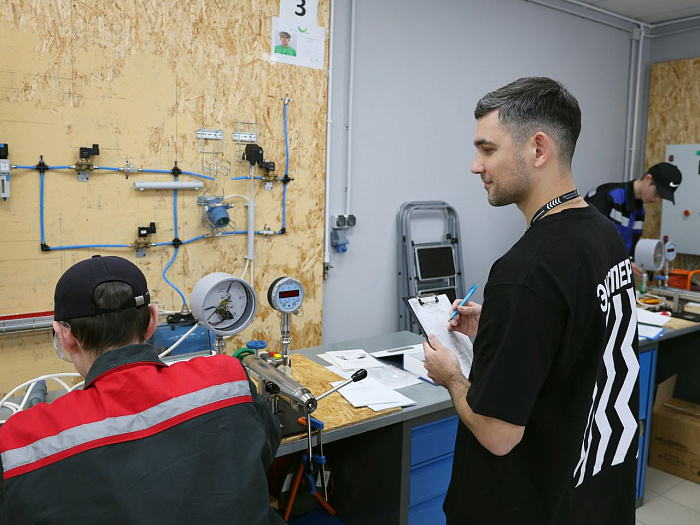 Сотрудники цеха КИПиА — инженер-электроник Владислав Карнаухов и инженер по контрольно-измерительным приборам и автоматике Максим Шубин оценивали работы по компетенции «Метрология и КИП».